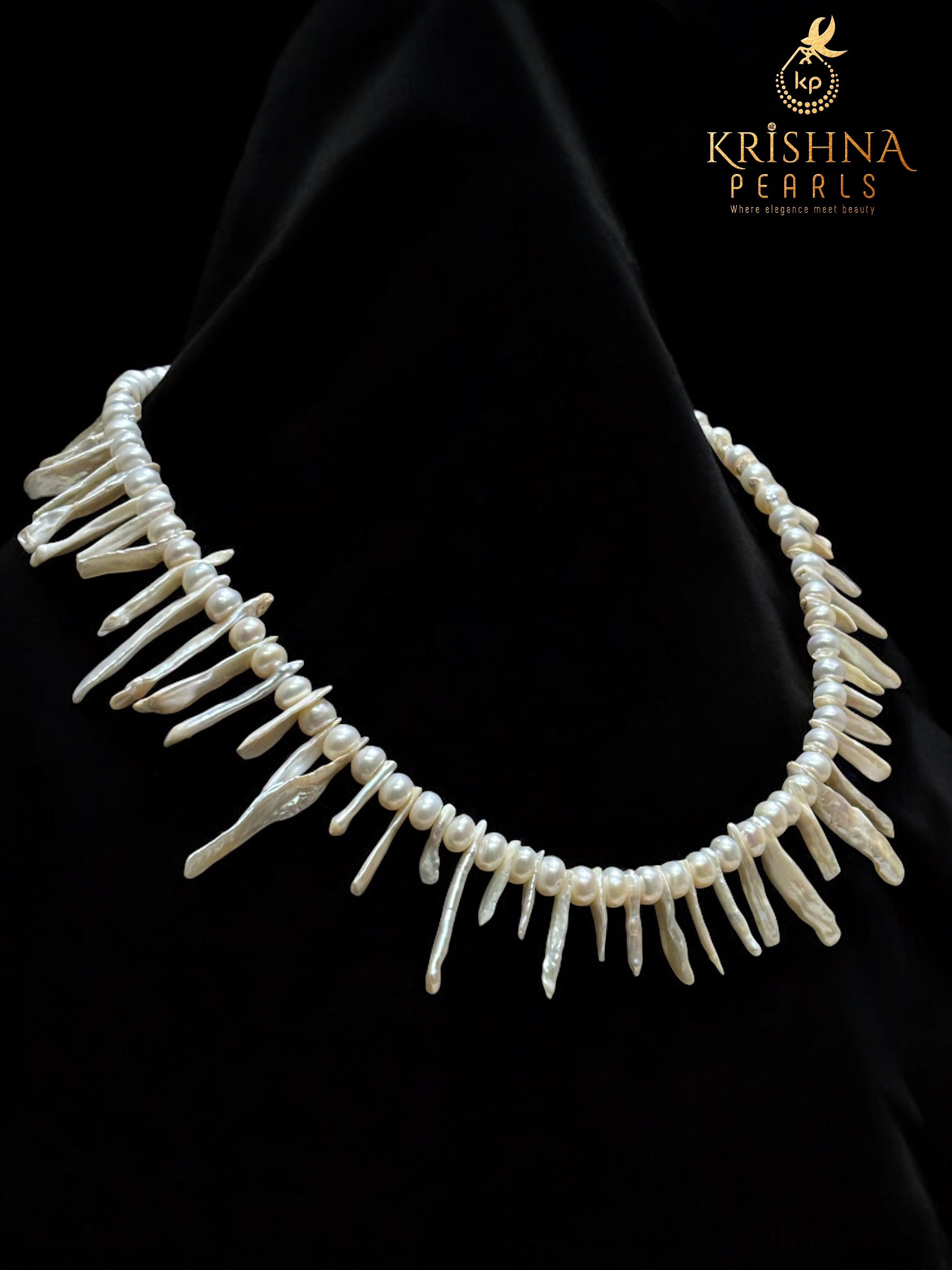 Pearl Type: Freshwater Round Pearls paired with Biwa (Stick) Pearls.