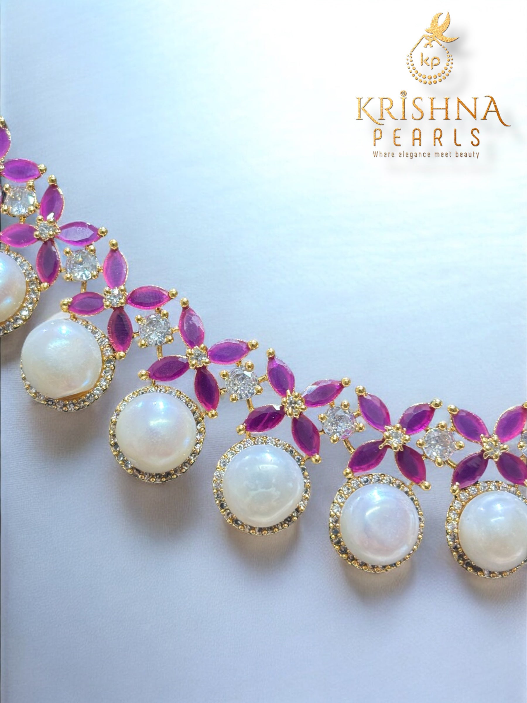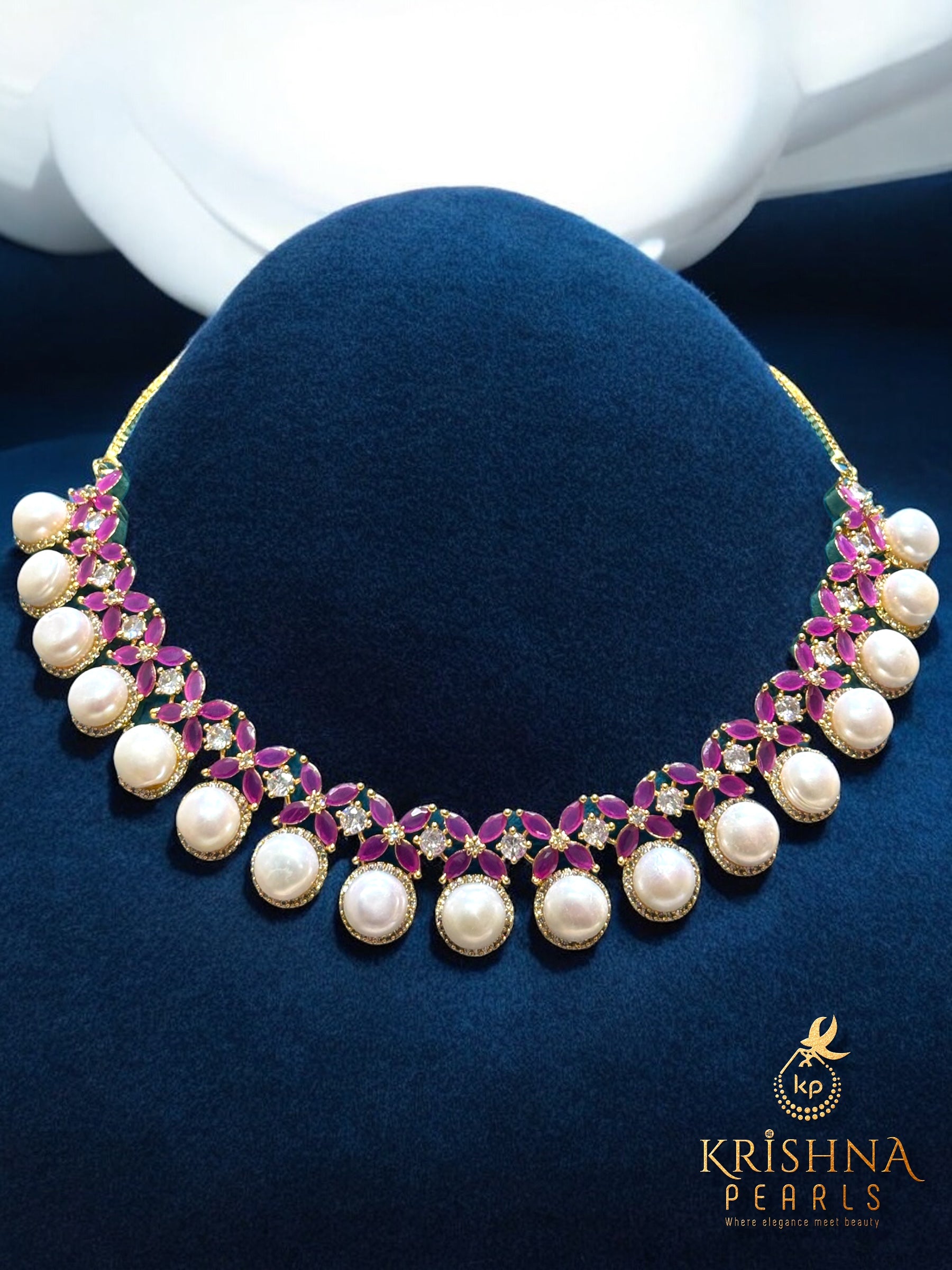 Lustrous Button Pearls: The necklace is adorned with high-quality, cream-white button pearls that offer a smooth, flat-back silhouette, ensuring they sit perfectly against the skin.